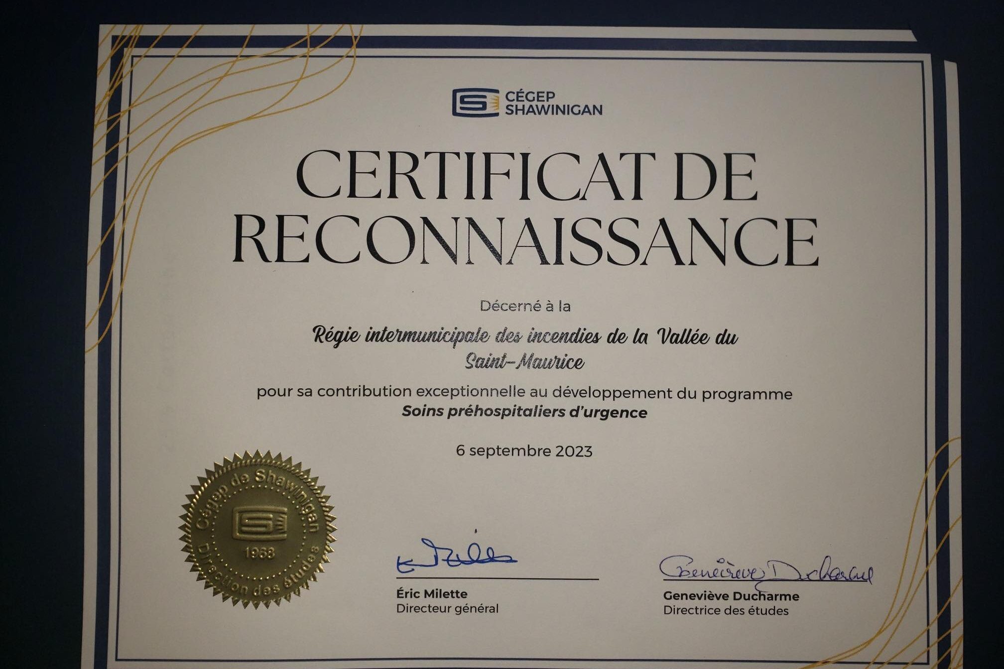 Le 20 juin dernier, 5 membres de la Régie intermunicipale des incendies de la Vallée du Saint-Maurice ont reçu un diplôme.